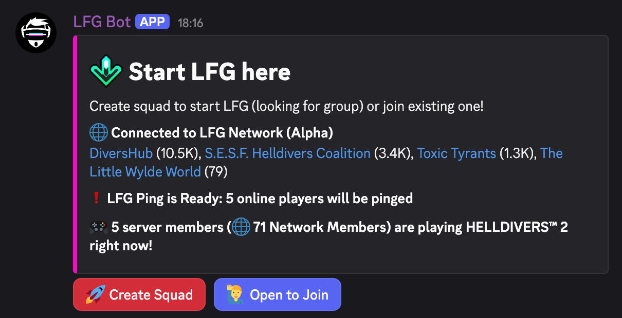 đ /connect-to-lfg-network to improve LFG time and make your server discoverable!