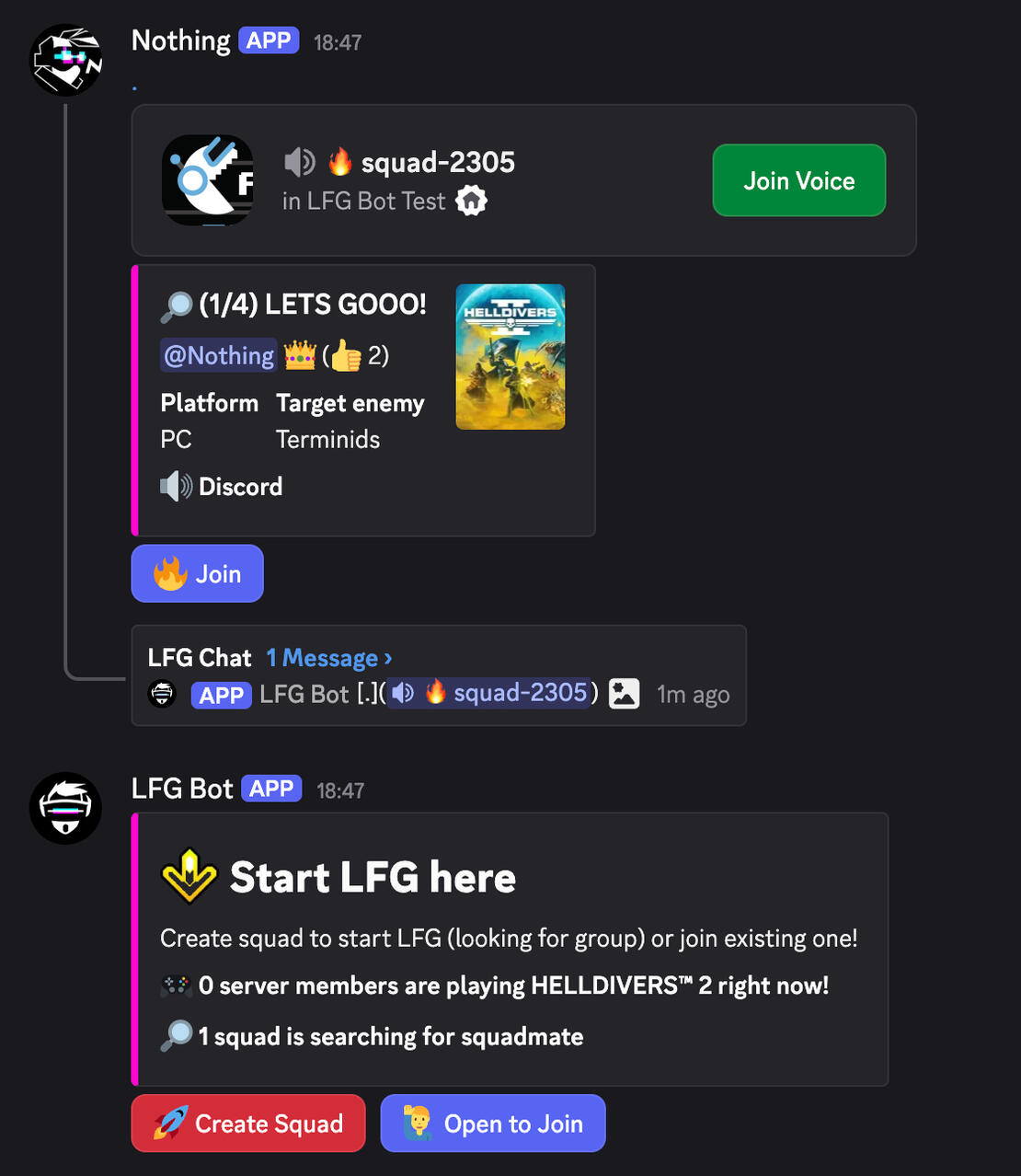 đŦ Bot Creates Voice Channel & LFG Thread...